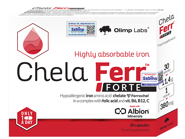 Chela Ferr® Forte có chứa sắt ferrochel ở dạng axit amin chelate. Hỗ trợ bổ sung và dễ hấp thụ sắt. hỗ trợ cải thiện thiếu máu do thiếu sắt.